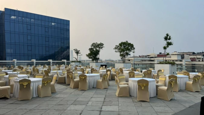 Tangential corridors on every floor lead to spacious and elegantly furnished conferencing and banqueting areas, spa and fitness centre, a delightfully appointed indoor bar, multi-cuisine and fusion restaurants, a stunningly beautiful outdoor pool with a panoramic views of the city and an attached poolside bar.